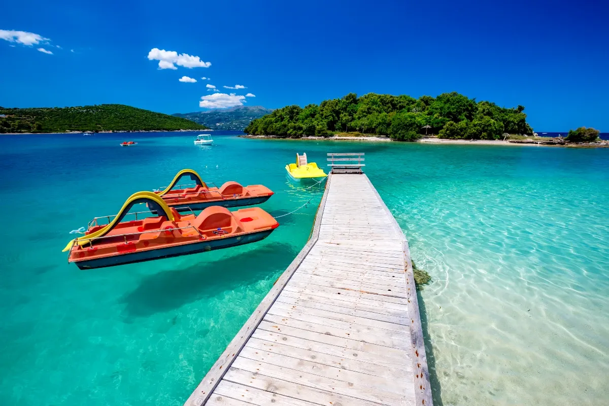 Daytime fun extends to boat hopping, Ksamil's signature way to chase unspoiled swims. Hop on a group excursion or private dinghy to explore sea caves carved by centuries of waves, diving into grottoes where sunlight dances on underwater cliffs. Fishing trips let you cast lines for your own catch, grilling it on board, while sunset cruises glide past cliffs glowing pink, with onboard musicians strumming folk tunes. These outings showcase Ksamil's 300 sunny days a year, ensuring every splash feels like a private escape.